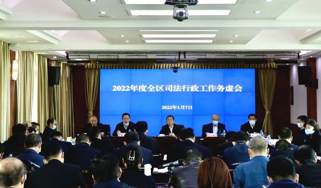 1月7日,自治区司法厅召开2022年度全区司法行政工作务虚会,深入学习贯彻党的十九届六中全会精神和自治区第十二次党代会精神,总结2021年全区司法行政工作,围绕为党的二十大胜利召开营造安全稳定的政治社会环境这条主线和建设壮美广西“1+1+4+3+N”目标任务体系,分析研判2022年全区司法行政工作发展形势,研究谋划2022年工作思路和任务措施。自治区司法厅党委书记、厅长林金文主持会议并讲话。