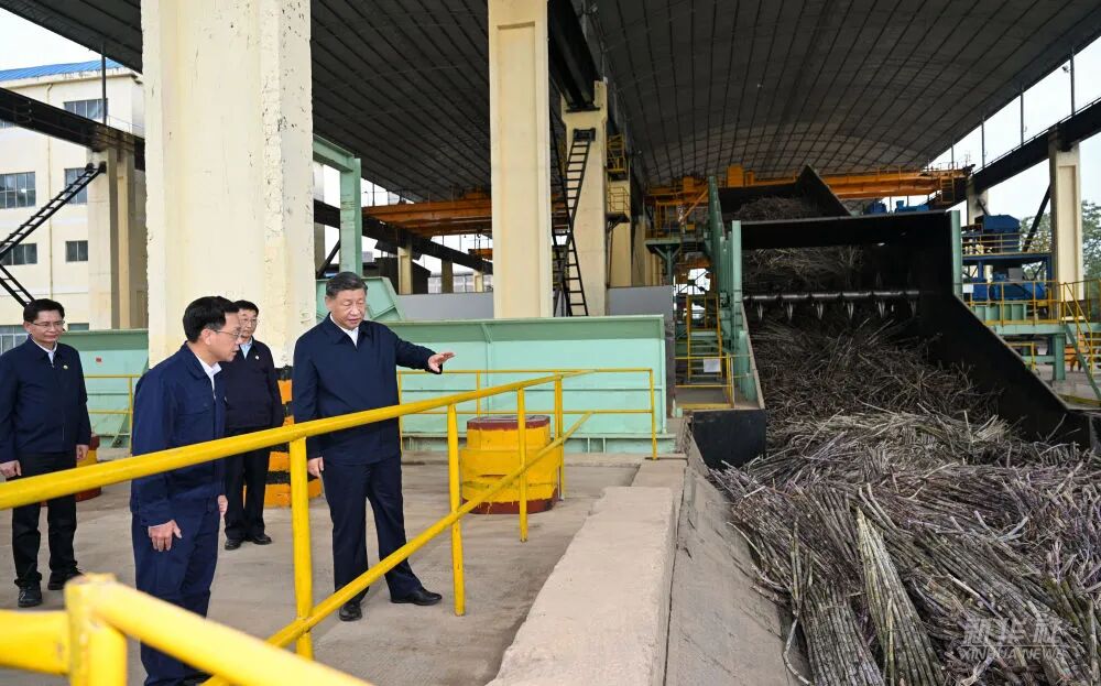 14日下午,习近平总书记在广西来宾市考察调研。他先后来到来宾市国家现代农业产业园黄安优质“双高”糖料蔗基地和东糖凤凰有限公司,了解甘蔗良种繁育、种植收成、糖产业发展等情况。