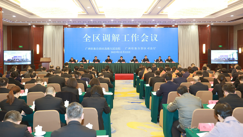 12月22日,全区调解工作会议在南宁召开,会议深入学习贯彻习近平总书记关于调解工作的重要指示精神和习近平总书记对广西重大方略要求,总结交流工作经验,研究部署下一步调解工作。自治区党委常委、政法委书记何文浩出席会议并讲话。自治区高级人民法院院长黄海龙、自治区司法厅厅长李道军出席会议。