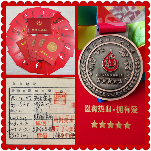 多年来,该所坚持做好无偿献血工作,并涌现出一大批献血积极分子。他们胸中有热血,心中有人民,他们响应国家号召,数十年如一日,初心不改,积极支持南宁市无偿献血公益事业,为整个社会注入源源不断的生机与活力。