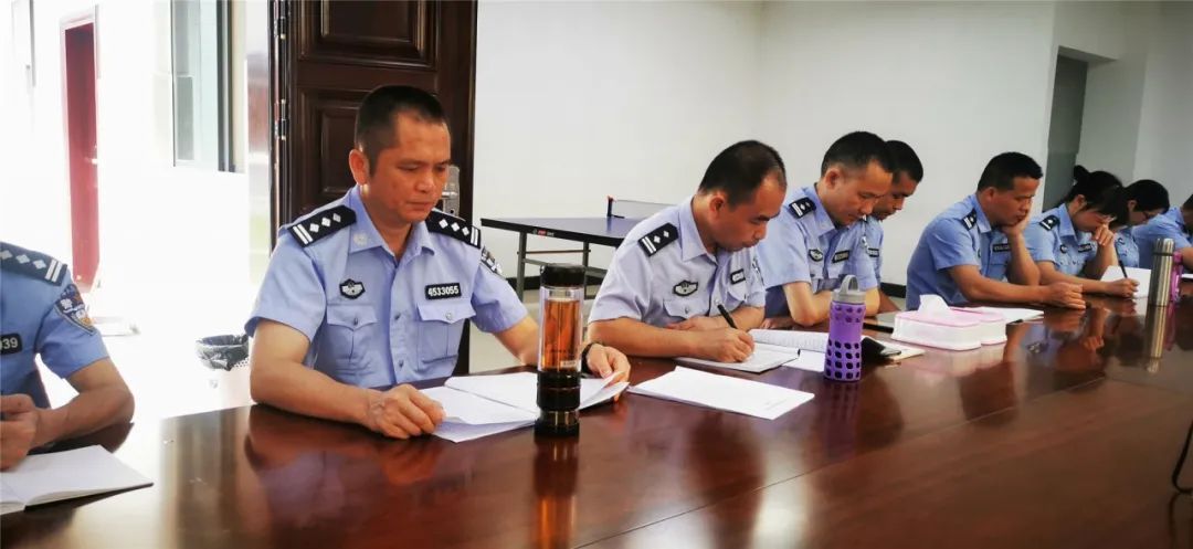 以提高党性修养、政治理论水平和法律法规意识为学习目标,分别在综合办公区、隔离备勤区、封闭执勤区组织警察集中学习领会习近平总书记系列重要讲话精神,学习相关法律法规知识,不断提升责任感和使命感,提高廉政勤政意识。警察纷纷依托“广西干部网络学院”“广西普法”以及“学习强国”等学习平台进行自学,营造浓厚的学习氛围。