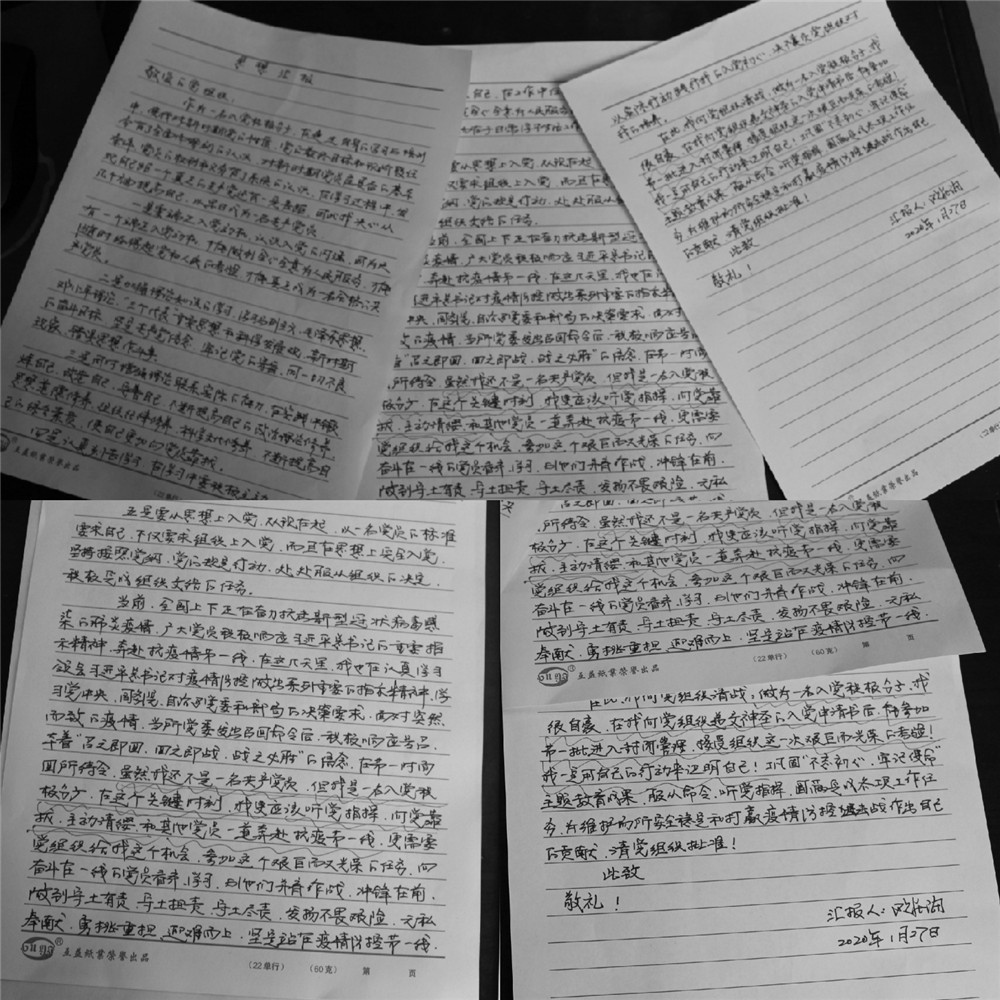 面对突然而致的疫情,一大队副大队长欧仕海即刻从柳州返程,进驻封闭区。他第一时间向党组织递交了入党思想汇报,以此作为请战书,势要打好这场疫情防控阻击战。