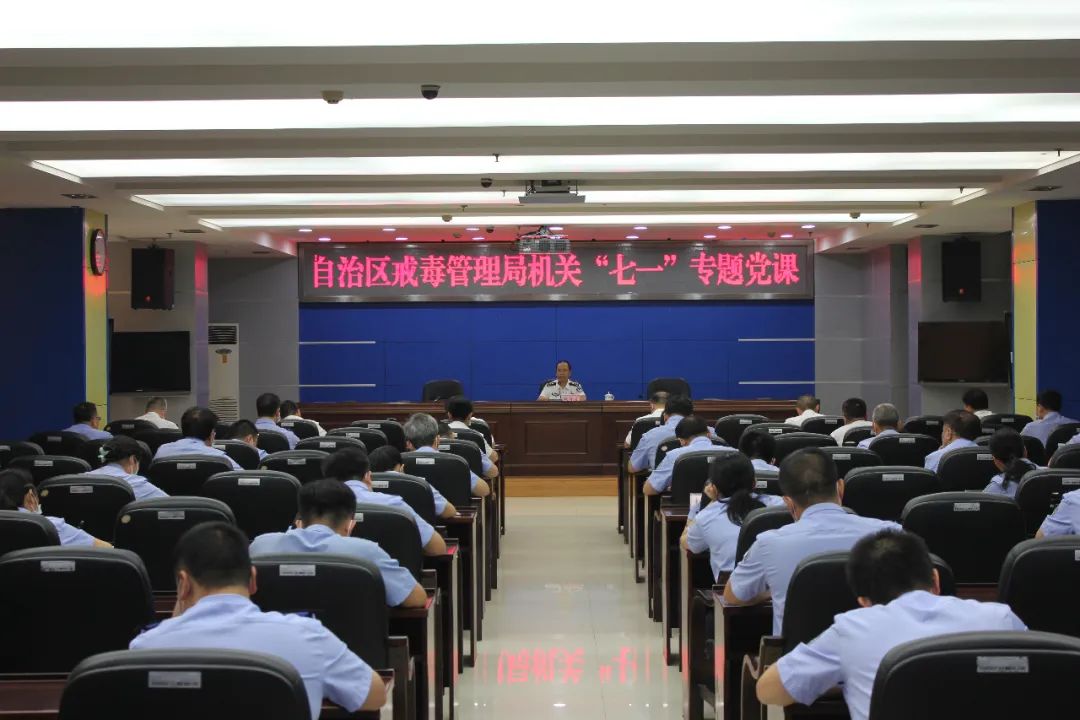 7月1日上午,在建党99周年之际,自治区戒毒管理局党委书记、局长张子先给局机关全体党员讲了题为《坚守初心使命忠诚干净担当》的专题党课。