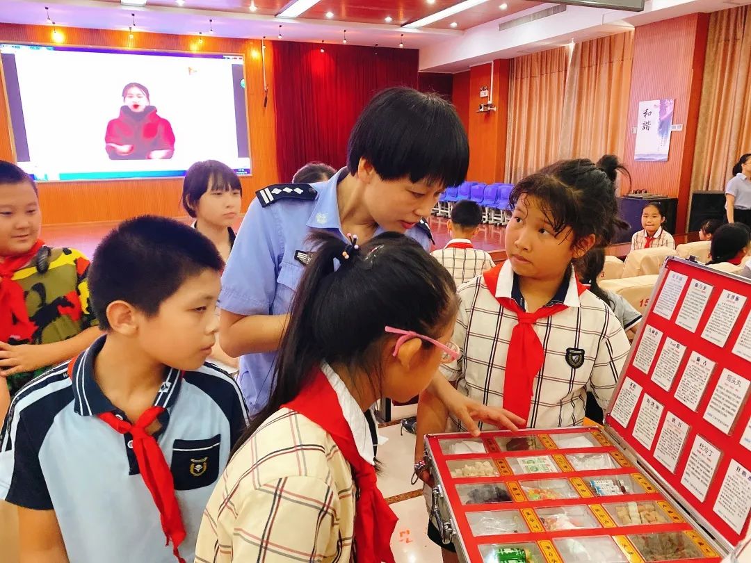 民警为同学们展示仿真毒品,让同学们更加直观地了解毒品,提高防范意识,增强识毒辩毒能力。