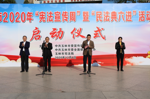 玉林市于12月4日—15日在全市组织开展2020年“宪法宣传周”暨“民法典六进”活动。4日上午,活动在玉林市文化广场正式拉开帷幕。