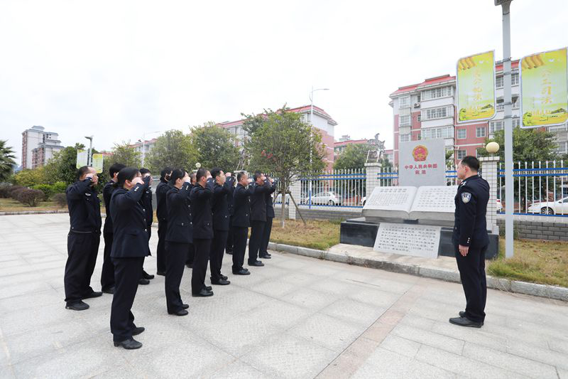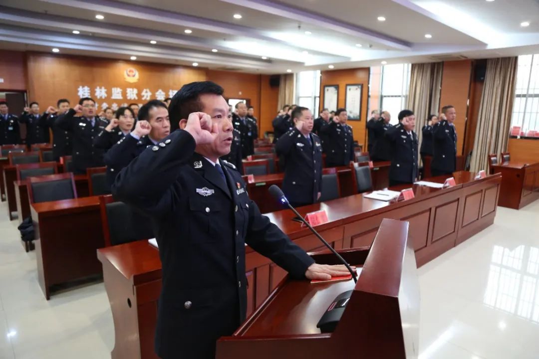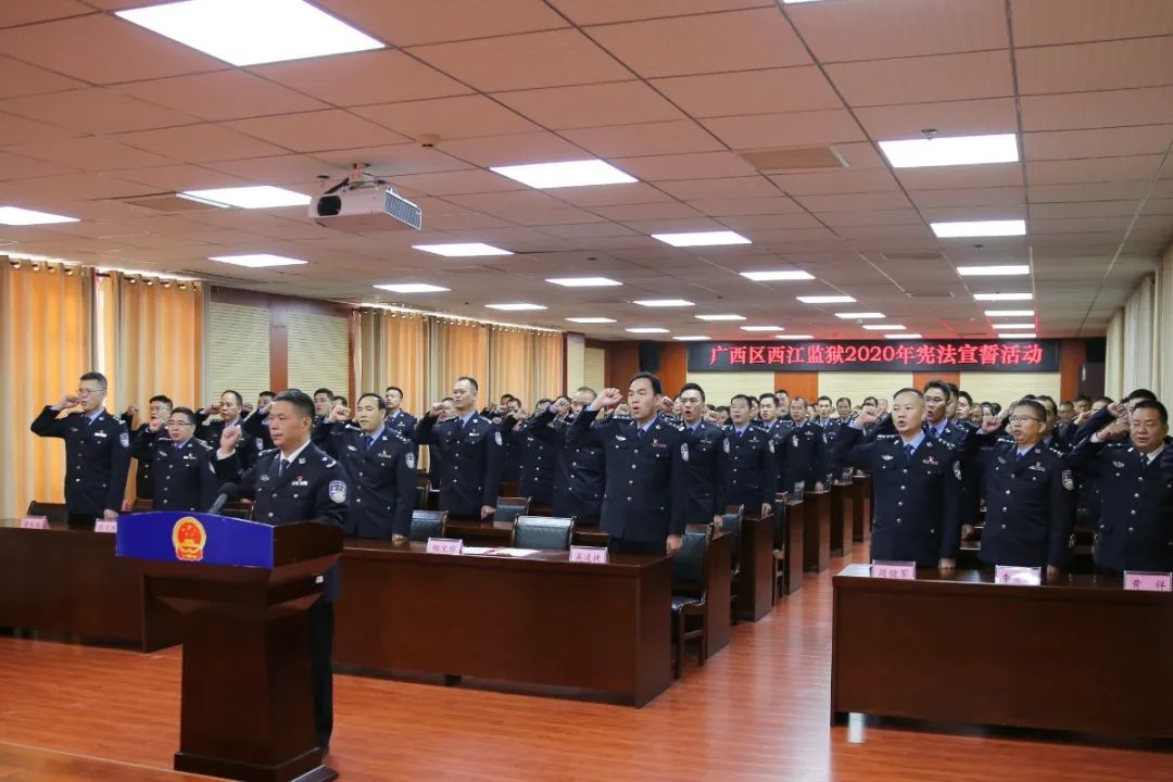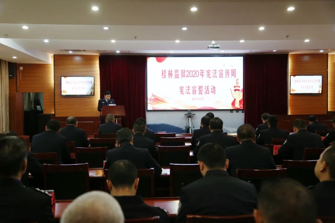 桂林监狱组织警察在监狱监管指挥中心举行宪法宣誓活动暨宪法宣传周启动仪式,各党支部开展宪法宣传周系列活动。