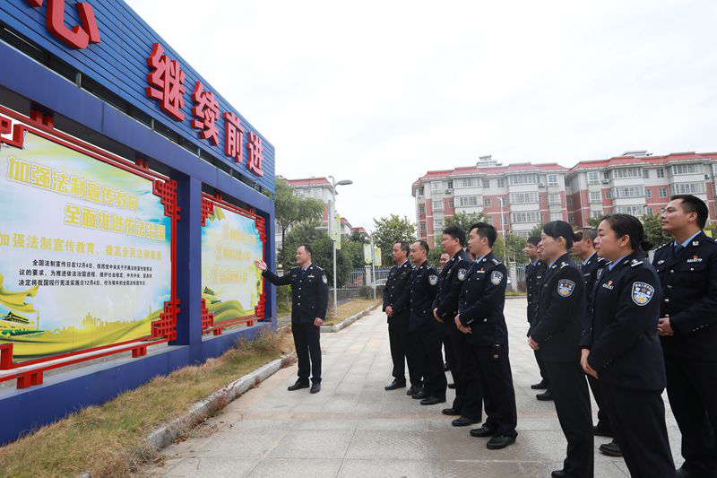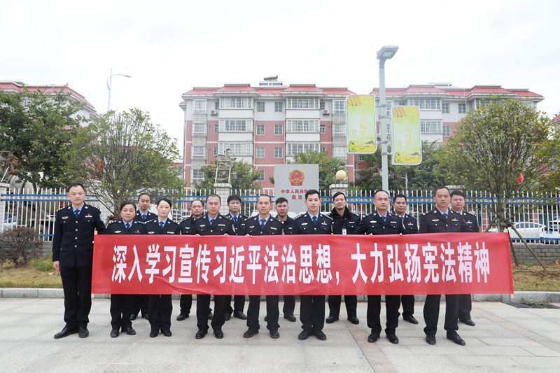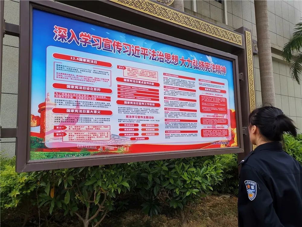 通过举行宪法宣誓仪式、张贴宣传挂图、在电子宣传屏滚动播放宪法宣传视频等方式营造浓厚的宪法学习氛围,激励和教育全体警察职工要依法履职尽责,提升法律素养。