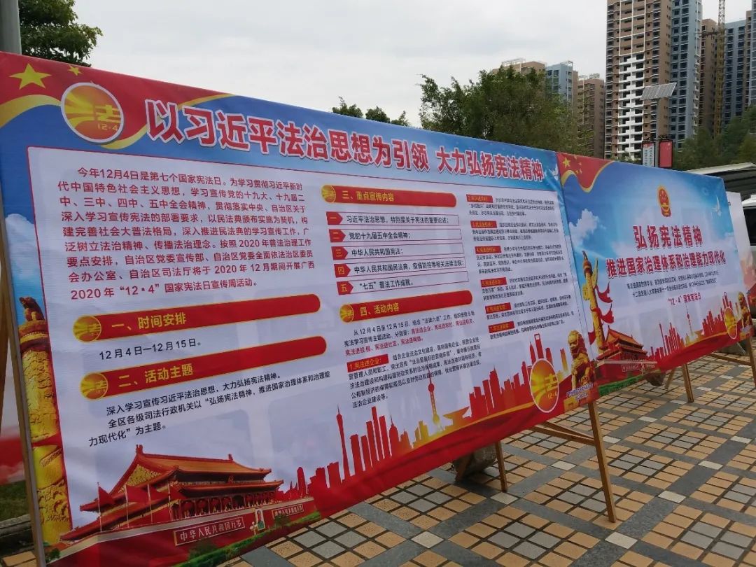 12月4日上午,在桂林市法治文化广场,七星区司法局组织全区全面依法治区成员单位开展第七个国家宪法日宣传活动。