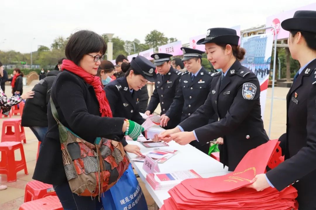 桂中监狱组织警察职工参加柳州市“宪法宣传周”启动仪式,精心制作400份国家宪法日宣传手册、中国人民警察警旗管理规定以及印制有宪法宣传字样的购物袋,向过往群众宣传宪法以及民族团结政策。