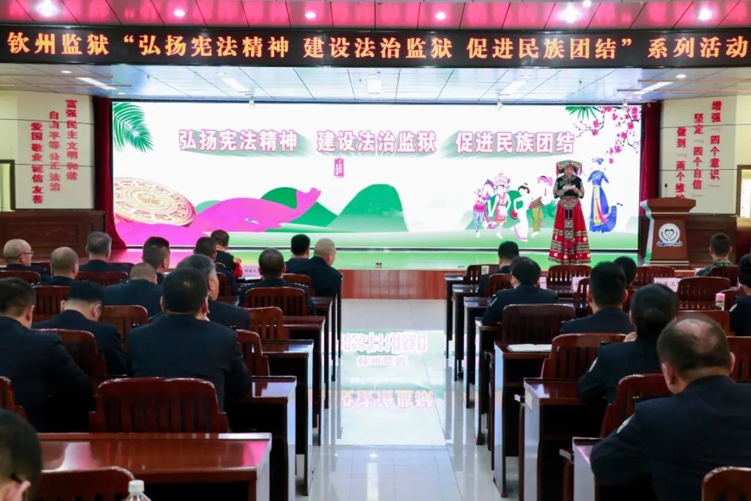 钦州监狱组织开展弘扬宪法精神、建设法治监狱、促进民族团结系列活动,主要有宪法知识讲座、民族团结政策理论学习宣讲、警察职工学习分享交流等内容。