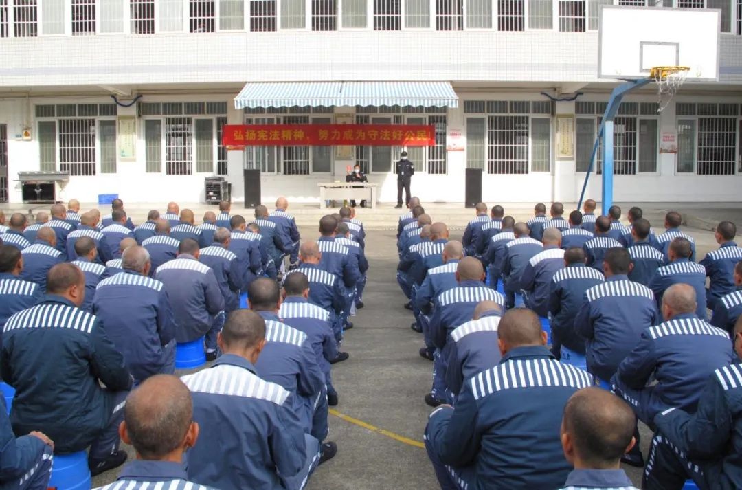 中渡监狱组织警察以宪法进机关、宪法进社区、宪法进校园以及宪法进监等形式,学习宣传贯彻习近平法治思想,弘扬宪法精神,取得良好效果。