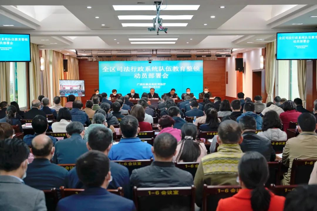 3月5日上午,自治区司法厅召开全区司法行政系统队伍教育整顿动员部署会,对全区司法行政系统队伍教育整顿进行动员部署。厅党委书记林金文作动员讲话,厅长雷震主持会议。