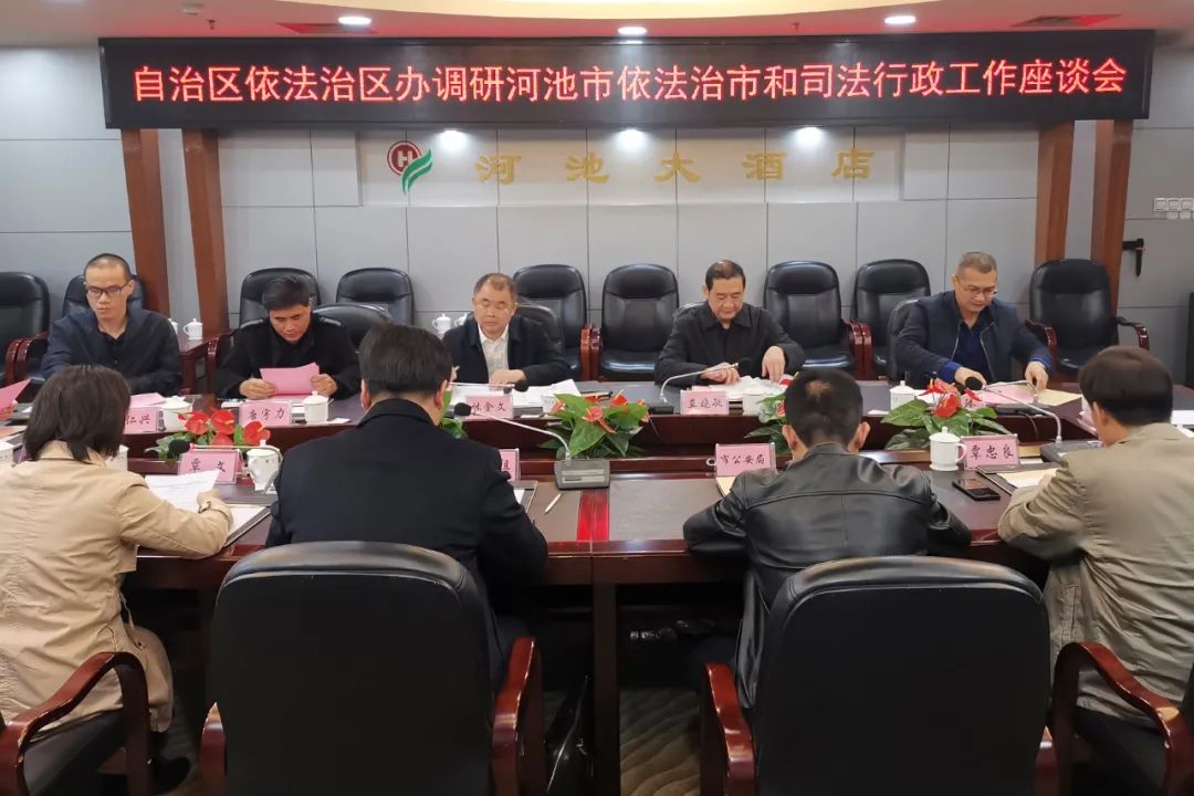 自治区依法治区办调研河池市依法治市和司法行政工作座谈会现场