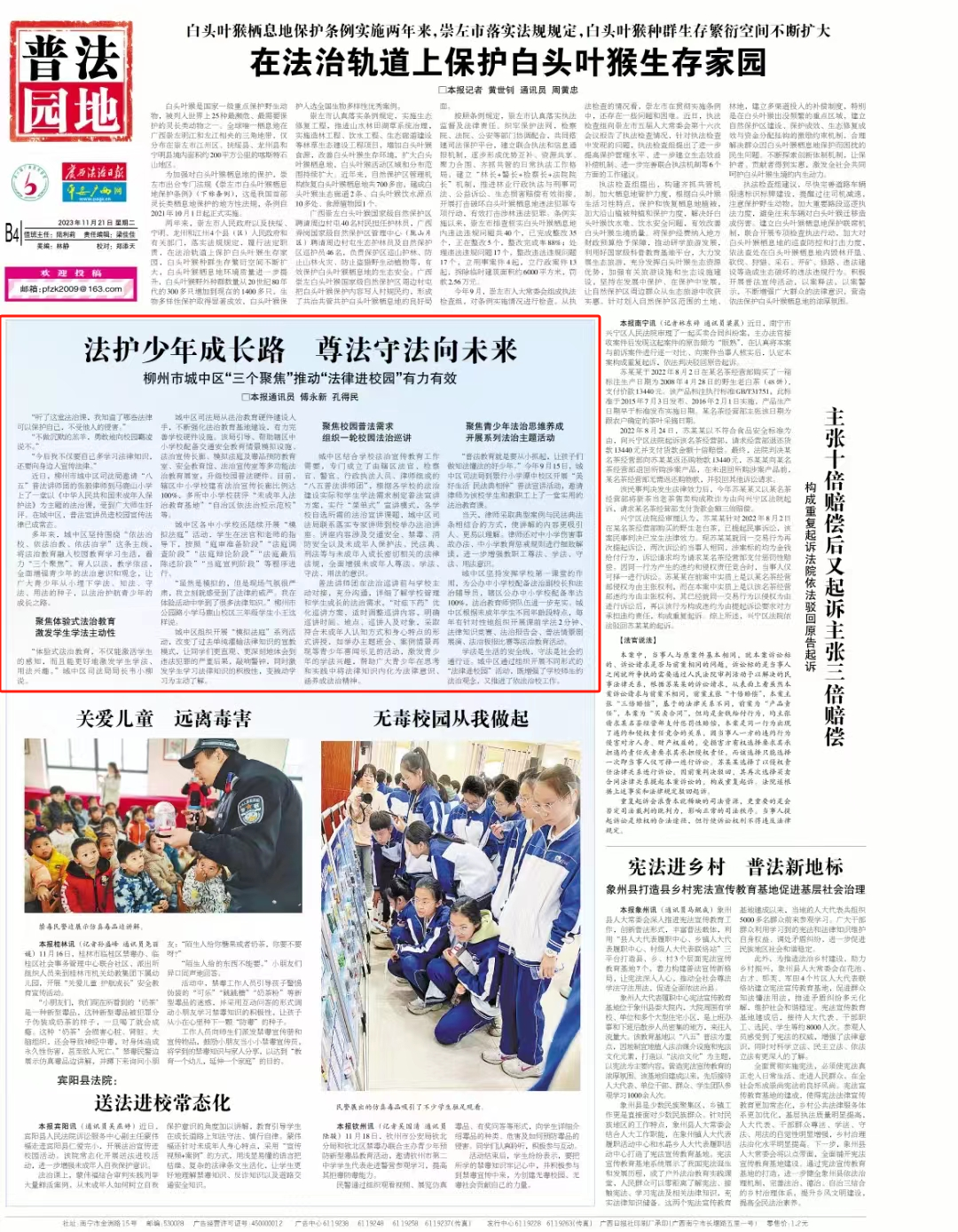 近日,柳州市城中区司法局邀请“八五”普法讲师团的张毅律师到马鹿山小学上了一堂以《中华人民共和国未成年人保护法》为主题的法治课,受到广大师生好评。在城中区,普法宣讲员进校园宣传法律已成常态。