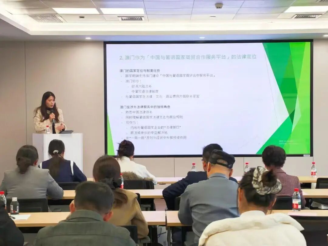 活动中,澳门广西社团联合总会常务理事、澳门律师蒋斯雅分享了中央及澳门特别行政区政府出台的一系列支持澳门仲裁事业发展的政策举措,深入解读政策对澳门仲裁事业发展的助力作用,指出澳门仲裁事业具有广阔的发展前景,热切期待桂澳两地仲裁界进一步深化交流协作。