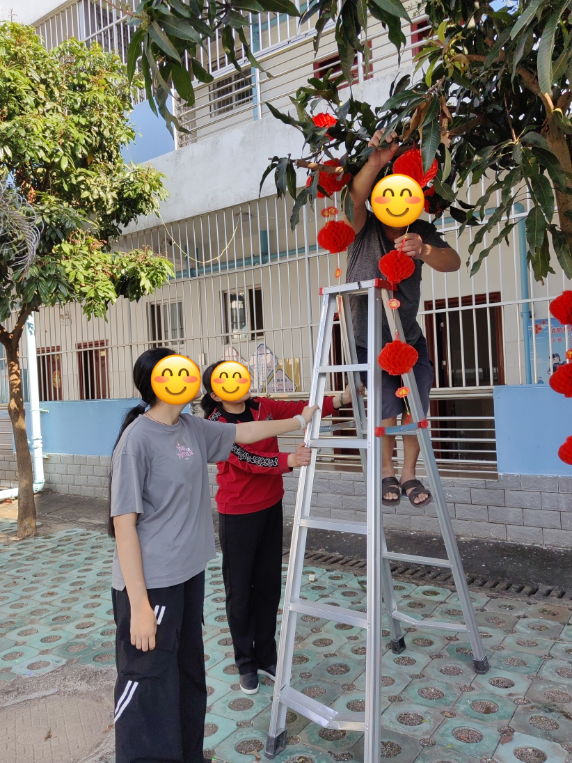 此时,一家人正在康泰楼旁挂彩灯、拉装饰,指尖缠绕着灯火,脸上写满安稳。