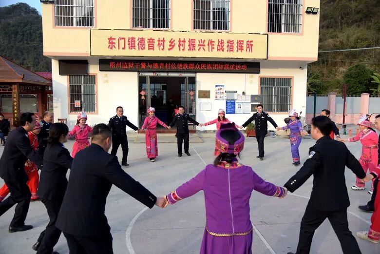 梧州监狱积极构建全方位、多层次、宽领域的结对帮扶体系,在罗城县德音村,监狱警察以喜闻乐见的形式,向村民宣讲国家的乡村振兴政策和党的民族政策;深入了解少数民族风俗传统和生活习惯,组织具有法律、医生职业资格的警察开展法律咨询和健康体检服务活动,不断增强人民群众的获得感、幸福感、安全感。
