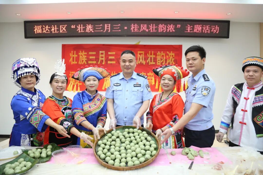 梧州监狱联合龙圩区福达社区开展“壮族三月三•桂风壮韵浓”主题活动,通过制作“三月三”特色传统美食、讲述民俗文化故事等活动,宣传“三月三”民族团结文化,畅谈党和国家的惠民政策给家乡带来的新变化,增进各民族之间的文化认同,营造中华民族团结一家亲的和谐氛围。