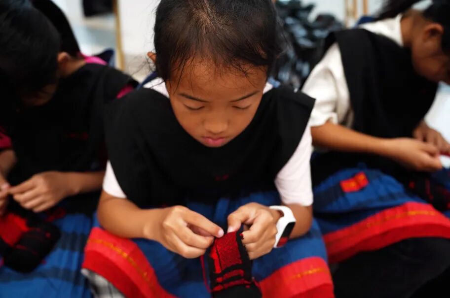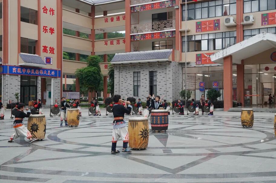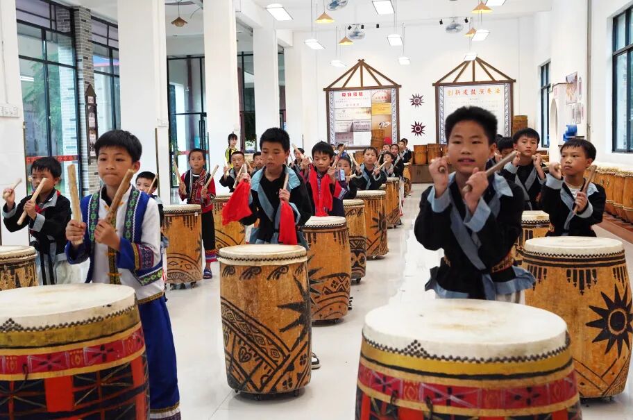 “咚咚咚……”,铜鼓声声,王尚小学的学生用白裤瑶特有的迎客方式带大家开启了特色的民俗体验之旅,除铜鼓课外,王尚小学还开设有皮鼓、陀螺、刺绣、牛角和纺织布等17个民族文化传承班。通过参观体验,大家对白裤瑶民族文化有了更深一层的了解。这些富有民族特色的课程,也在课堂教学中潜移默化地进行民族文化教育和传承,进一步增强了学生的民族自信与文化自信。