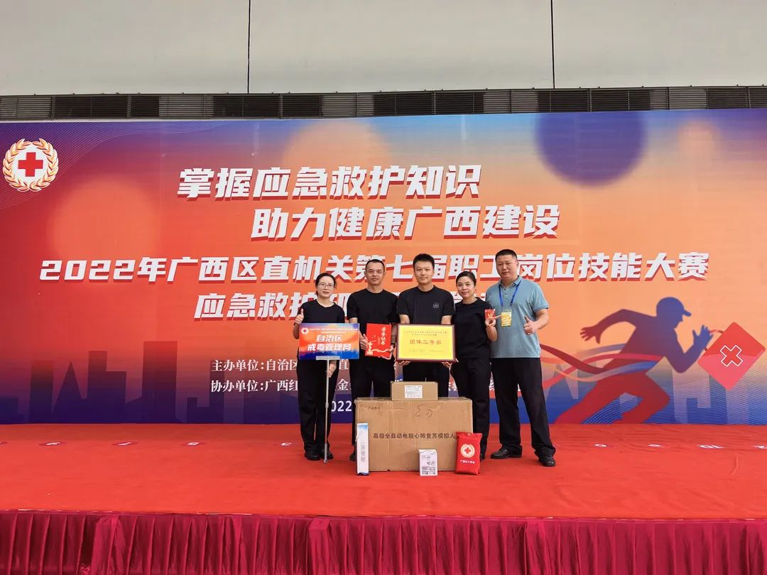 9月27日,由自治区党委区直机关工委、广西红十字会联合举办的“2022年广西区直机关第七届职工岗位技能大赛应急救护知识和技能竞赛”在南宁国际会展中心举行,全区14支医疗队伍参与角逐。自治区戒毒管理局代表队以总分排名第五的好成绩,荣获团体三等奖,广西第三强制隔离戒毒所石星磊获个人二等奖。
