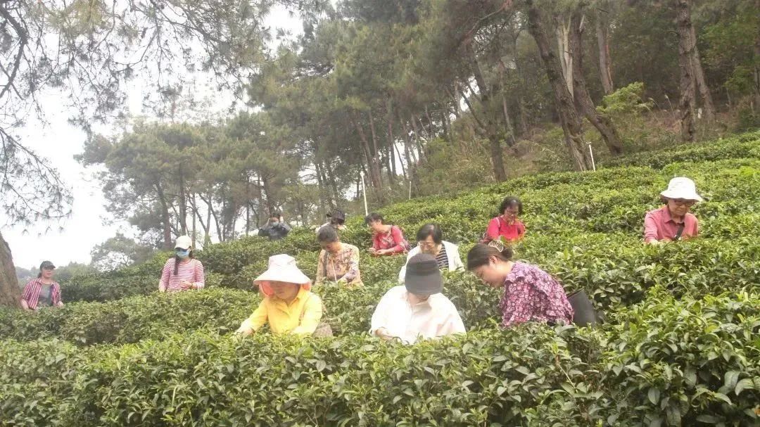 大家跟随工作人员的指引,穿梭在绿意盎然的茶山上,轻捻茶树上刚刚冒出的嫩芽,轻轻放入腰间的竹篓,感受茶文化,助力乡村振兴。茶山上回荡着欢声笑语,一片生机勃勃的景象。