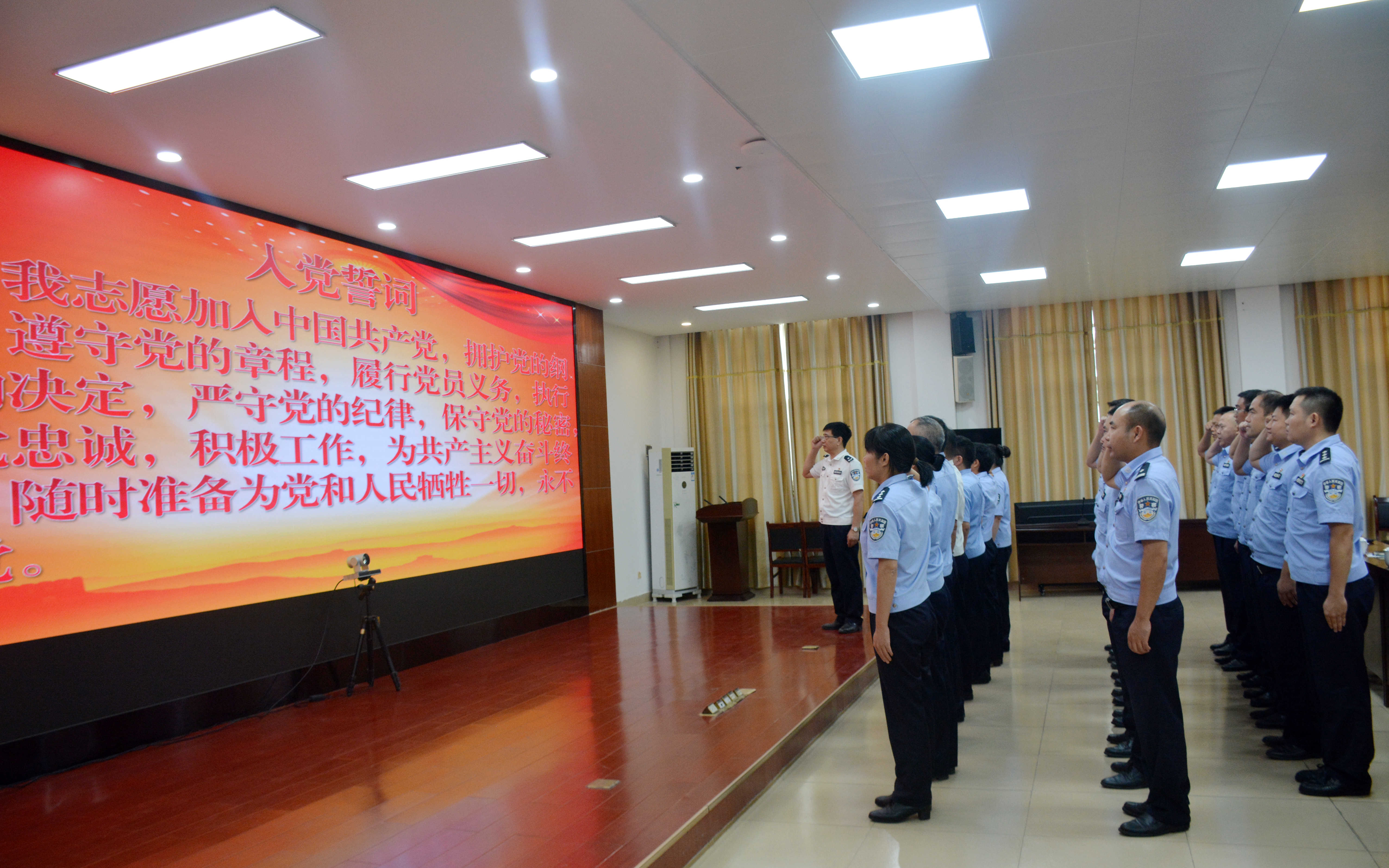 广西第一、女子强制隔离戒毒所,北海戒毒康复所举行庄严的升国旗仪式。全体党员庄严肃立,面向国旗行注目礼,伴随着激昂的《义勇军进行曲》放声高歌,祝愿伟大祖国繁荣昌盛。重温入党誓词,铿锵誓言响彻会场,进一步增强党员使命感和责任感。