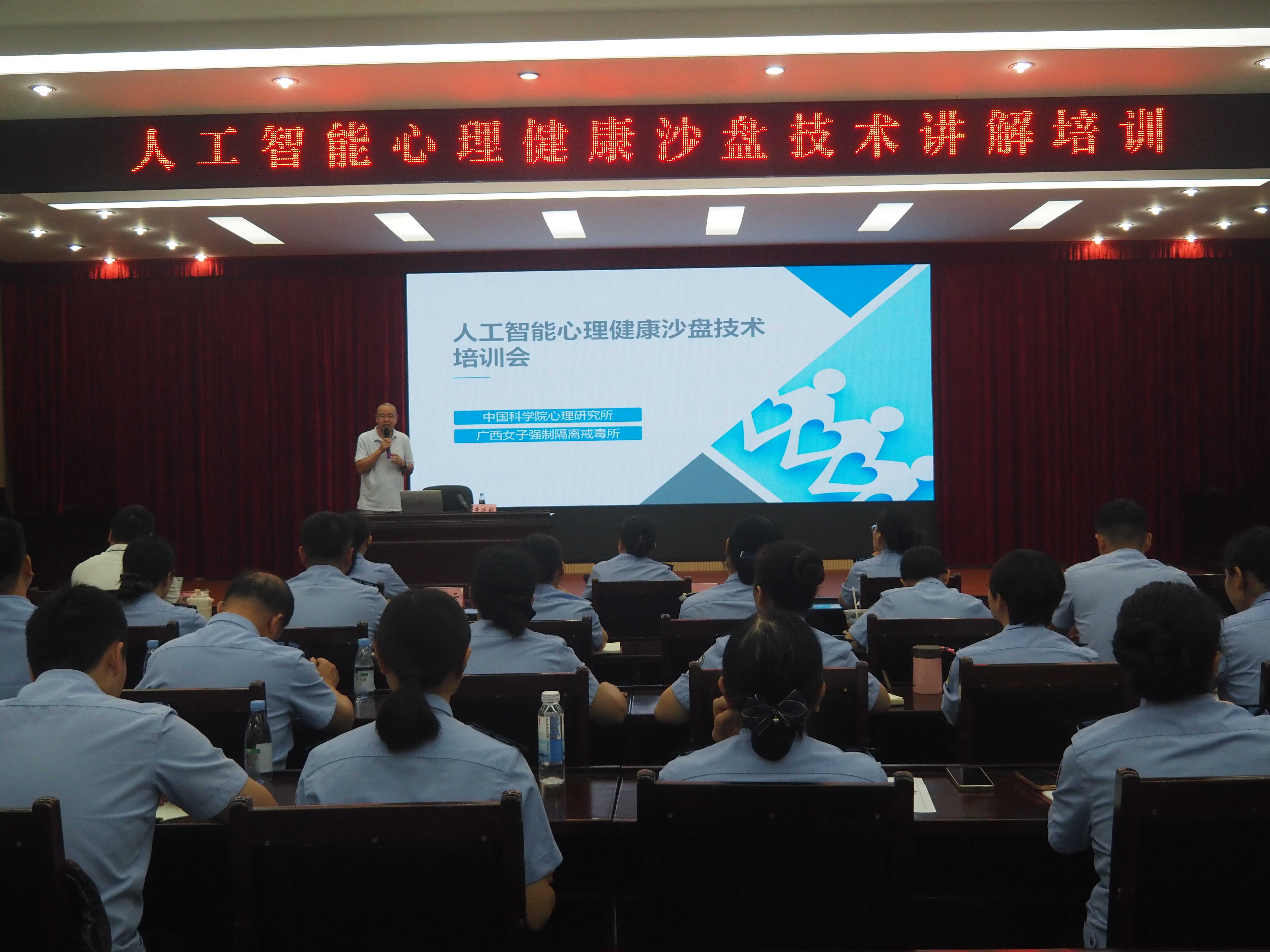 广西女子强制隔离戒毒所与中国科学院心理研究所、南宁市第五人民医院合作,探索预防青少年药物滥用治理工作。引入中国科学院心理研究所AI电子心理健康沙盘,邀请研究所的教授开展《人工智能心理健康沙盘技术》培训,为警察职工详细讲解AI电子心理健康沙盘算法及原理。