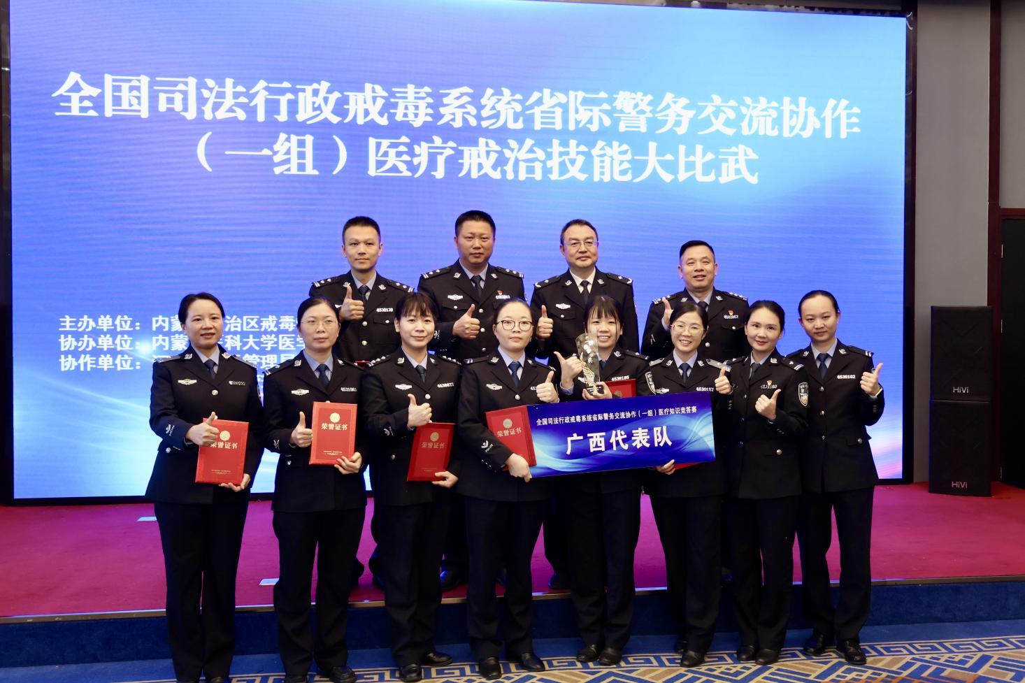 11月10日至13日,全国司法行政戒毒系统省际警务交流协作(一组)医疗技能大比武在内蒙古自治区呼和浩特市举行。广西戒毒管理局党委高度重视、精心组织,全体队员充分发扬敢闯敢拼、扛旗争先的精神,取得了3个第一名(一等奖)、2个第二名、1个第三名的佳绩。其中,个人项目上,广西第一强制隔离戒毒所蔡团团、第二强制隔离戒毒所钟佼芸分别获医疗技能操作赛(医生)组第一、第二名;第六强制隔离戒毒所林玉莎、第一强制隔离戒毒所曾少娟分别获医疗技能操作赛(护士)组第一、第三名;第六强制隔离戒毒所梁周杭获健康促进能力赛第二名。团体项目上,由第一强制隔离戒毒所覃黎卉、第二强制隔离戒毒所莫婵、第三强制隔离戒毒所黄敏丽组成的代表队获医疗知识竞赛一等奖。