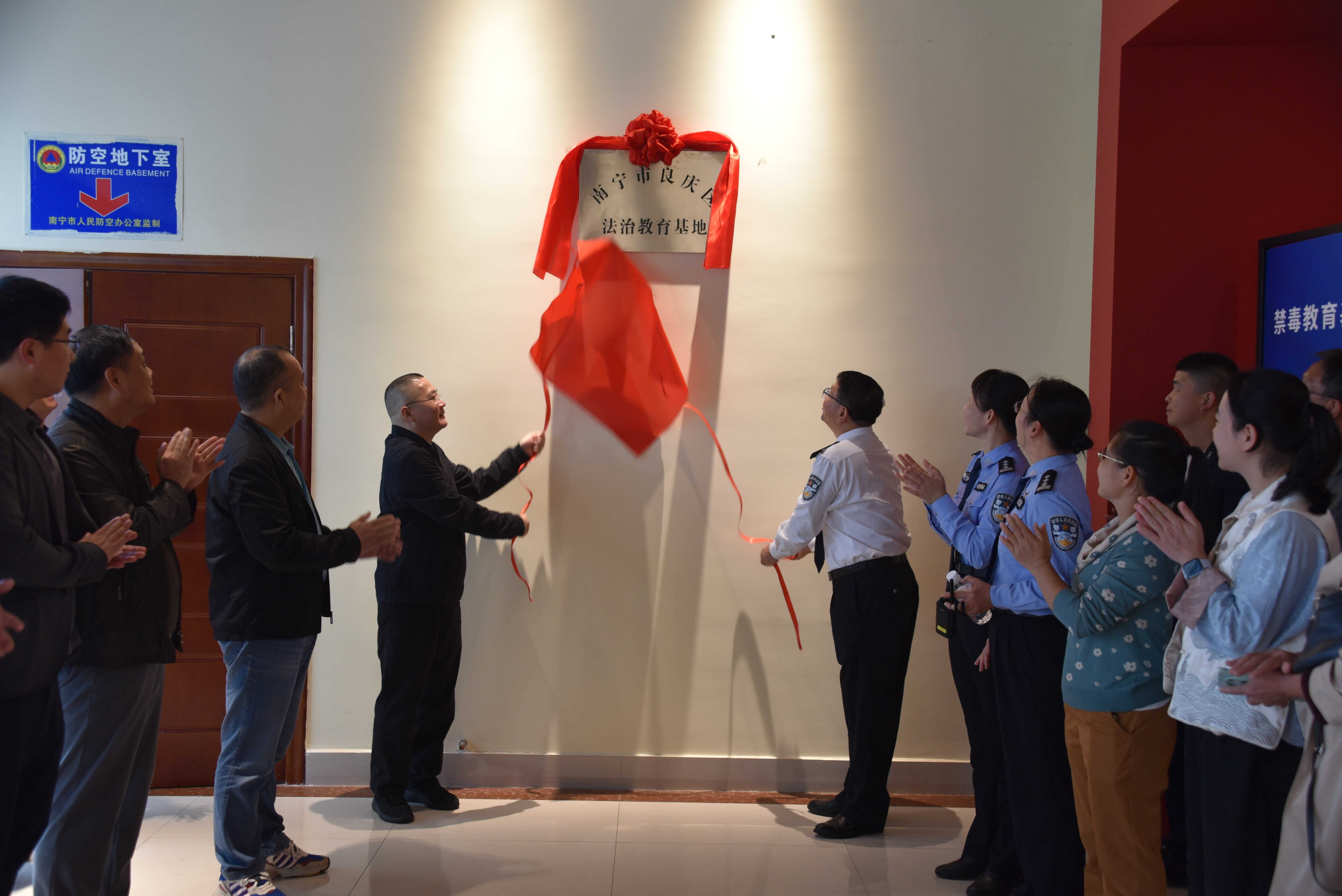 11月7日,女所党委副书记、政委罗文多与良庆区党委常委、政法委书记彭立共同为良庆区“法治教育基地”揭牌。活动当天,女所还和良庆区党委政法委、司法局、教育局、妇联等部门召开法治宣传教育联合工作座谈会,围绕“预防青少年药物滥用”和“禁毒教育与法治教育融合路径”进行深入探讨,强调要充分发挥戒毒场所案例资源的教育功能,以真实案例警示青少年,让“看得见的代价”成为法治教育的生动教材。会上,5名戒毒警察获良庆区教育局及多个学校联合聘任为法治副校长,将定期深入校园开展法治宣讲。
