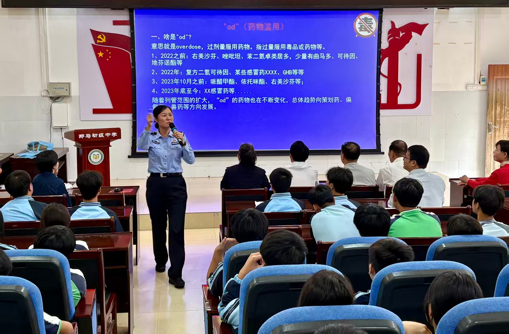 10月30日,女所退休党支部联合良庆区司法局、教育局走进良庆区那马镇初级中学,共同开展“法治护航成长平安校园同行”护苗行动。戒毒警察以“青春不‘毒’行”为题作专题宣讲,深入剖析毒品给社会、家庭和个人带来的严重危害,揭开新型毒品伪装,传授拒毒技巧。此外,采用“案例+法条”相结合的方式,宣讲《中华人民共和国社区矫正法》,系统阐释未成年人涉法后的矫正机制与帮扶政策,帮助青少年树立“知法不违法、违法必担责”的法治观念。