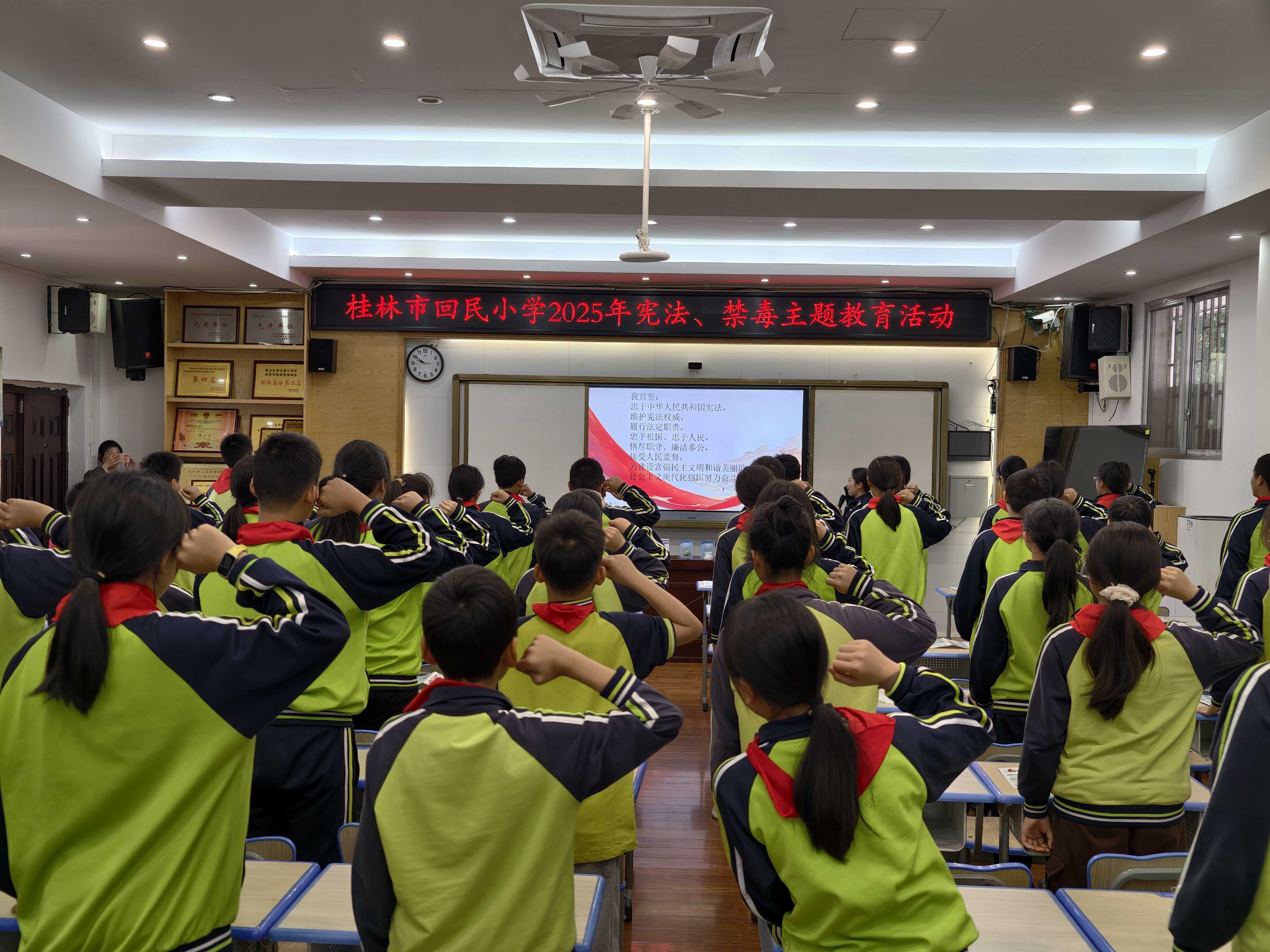 12月2日,四所宣讲团走进桂林市回民小学,为师生们带来一堂别开生面的双语普法课,通过情景剧、互动问答等形式,将宪法宣传和禁毒宣传结合起来,进一步激发少数民族学生学法的积极性和自觉性。同日,四所还在桂林市象山区平山街道瓦窑社区开展了“无毒承诺”主题活动,为群众普及宪法知识、答疑解惑,号召群众积极学法用法,增强法律意识,提高法律素养。活动吸引了500余群众到场参与。