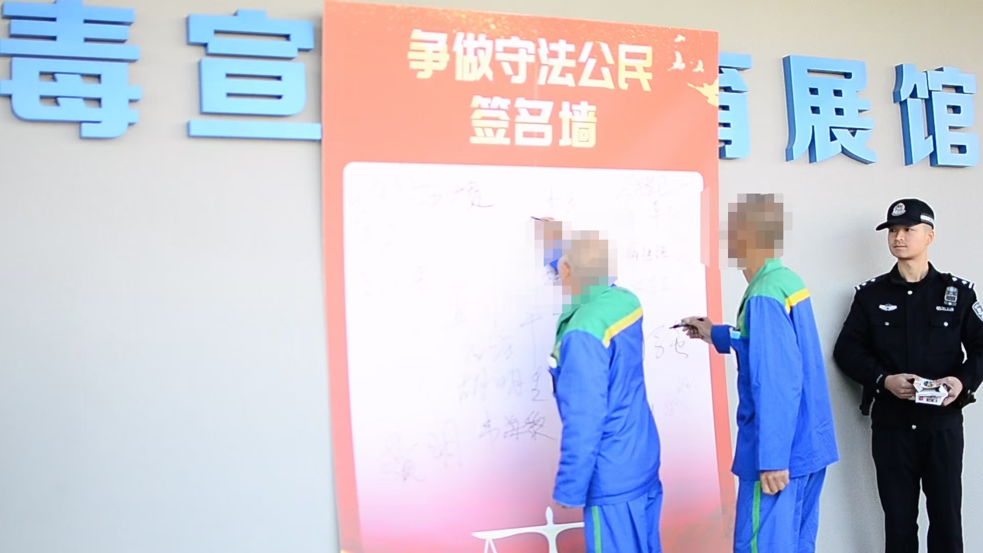 “我承诺:认真学习法律知识,严格遵守法律法规,坚决远离毒品危害,争做守法公民……”在“争做守法公民”承诺签名活动中,戒毒人员郑重地在签名墙上留下自己的名字。一个个签名,是他们对法律的庄严承诺,是告别过去、迈向新生的决心写照,承载着对重返社会的深切向往。