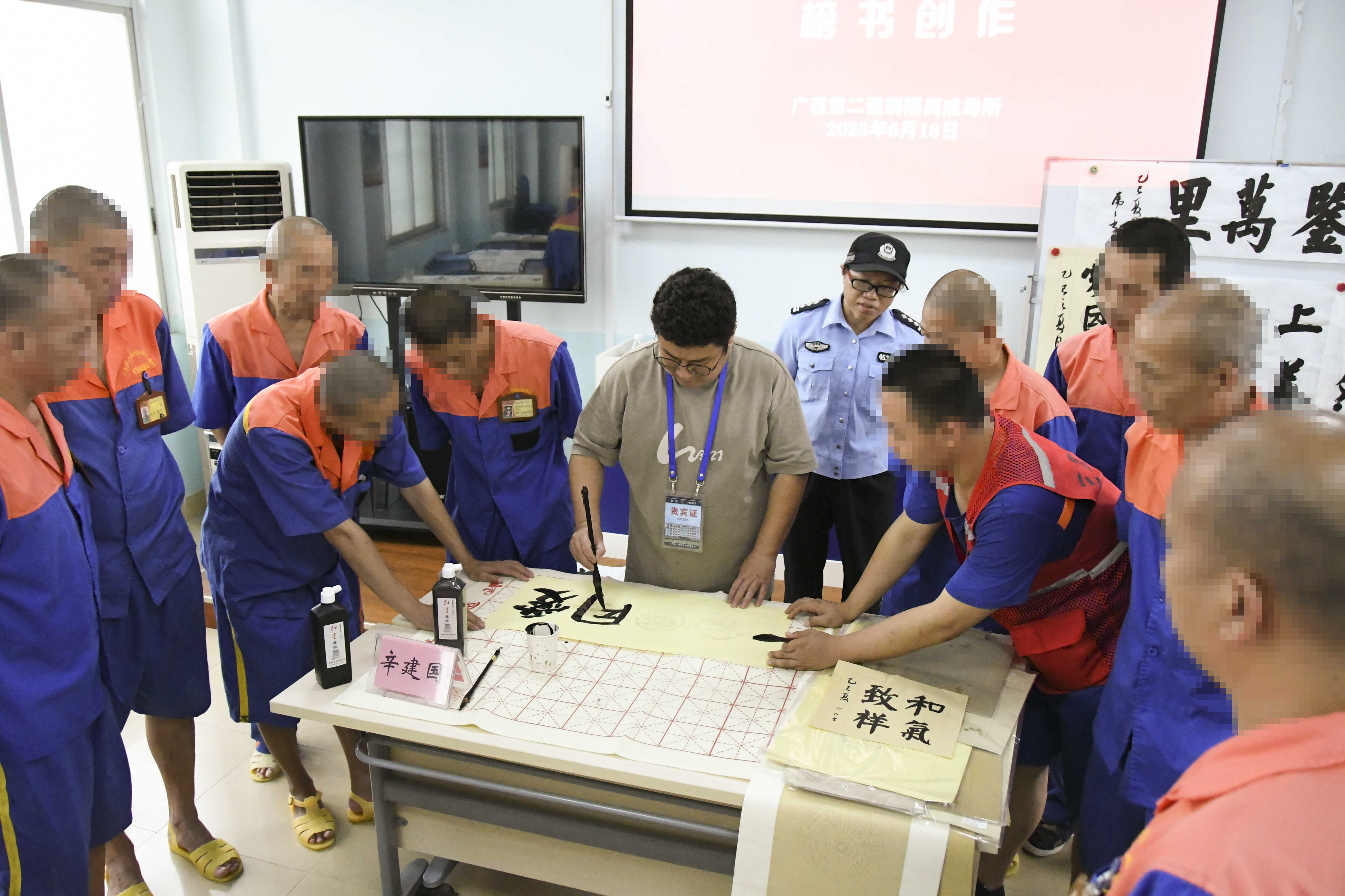 一是深化体系构建,夯实帮教基础。该所与民盟柳州市委签订“黄丝带帮教”协议,明确12项具体任务,推动帮教工作常态化、系统化转变。坚持需求导向,打造“法治+文化”双引擎,开展“黄丝带帮教”工作以来,累计举办法治专题讲座4场,覆盖500余人次;组织“翰墨书志·丹青送福”等主题帮教活动,传递社会关怀,助力戒毒人员心理康复。