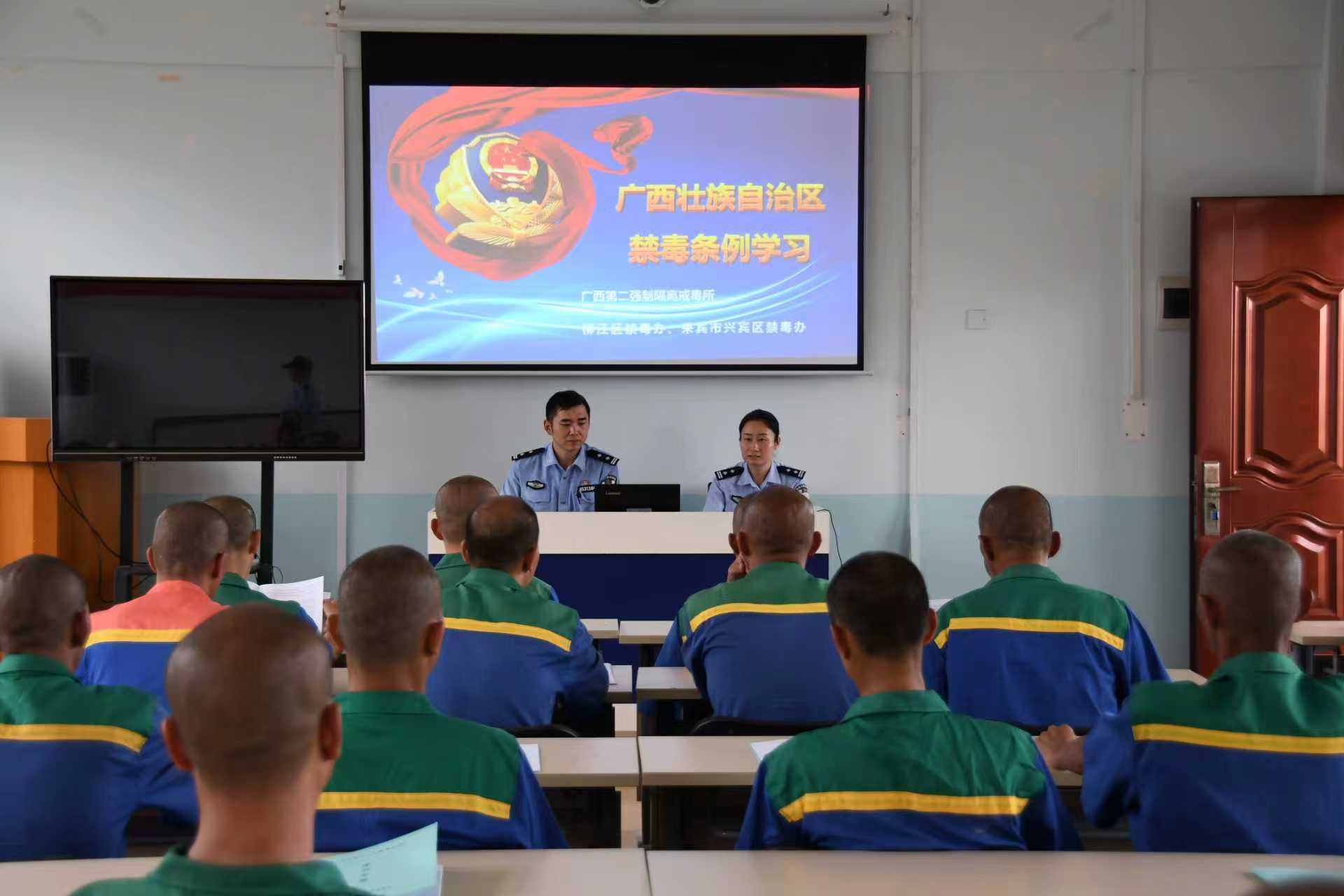 图为田杰向戒毒人员开展入所教育第一课。覃莹 摄